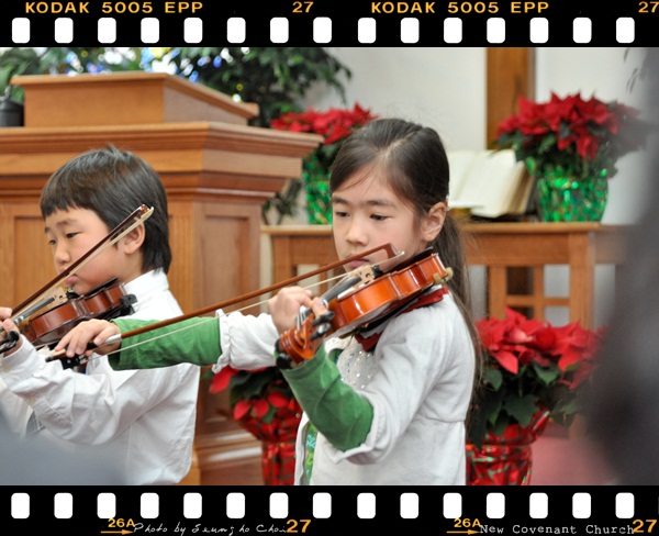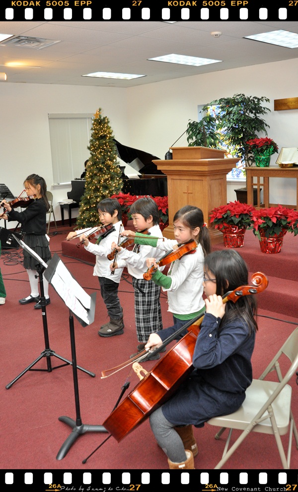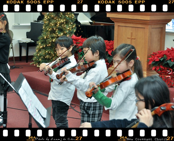 아기 예수님의 생일에 천사같은 어린 아이들의 오케스트라의 연주와 사진은 없지만 멋진 성가 대원의 찬양이 있었습니다.